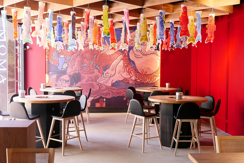 整體其實是以酒場歡樂熱情風格為主,特別是後面韓風高腳椅座位上面的鯉魚飄也很顯眼!