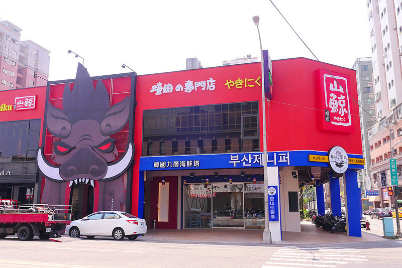 來到漢口路四段遠遠就能注意到【山鯨燒肉】這棟建築,巨大的龍頭造型加上紅色塗漆,