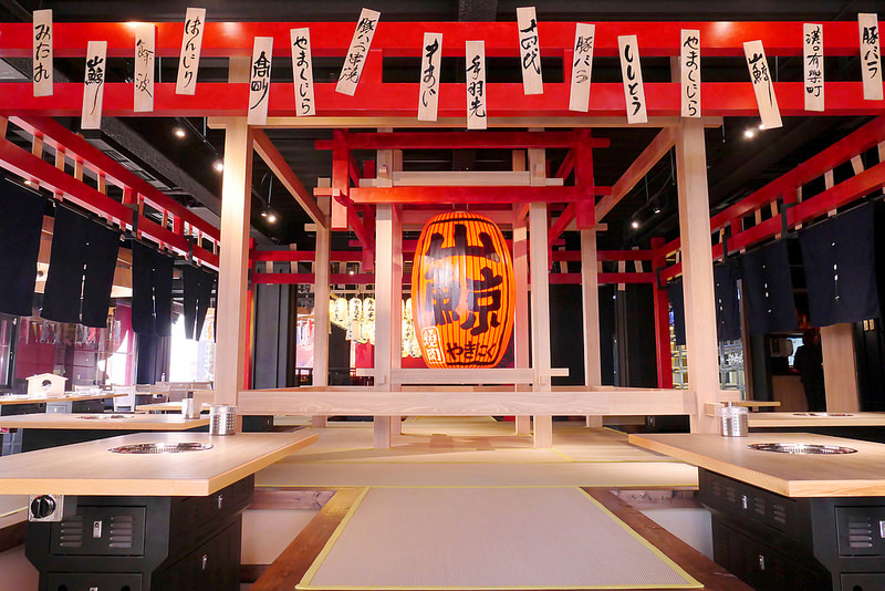 中間有個大紅燈籠是名為『有樂町』的榻榻米席座位,可以在這邊喝酒聊天吃串燒,