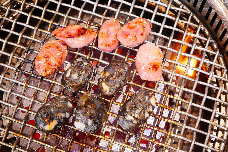 一次附上兩種香腸:原味跟墨魚,只要烤到呈現金黃微焦就可以吃了!
