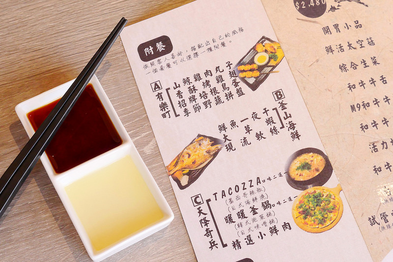 特別是附餐部份有ABC三種選擇,A餐竟然還是串燒組合,C餐有韓式泡菜鍋等等,