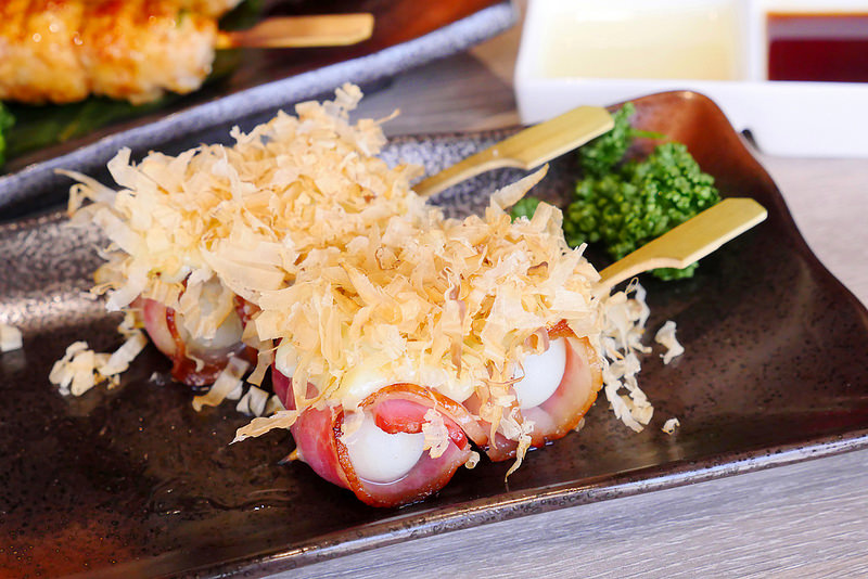 一般的附餐都是生菜沙拉一些有的沒的,這邊端上更精緻的日式風味,是我愛的串燒,