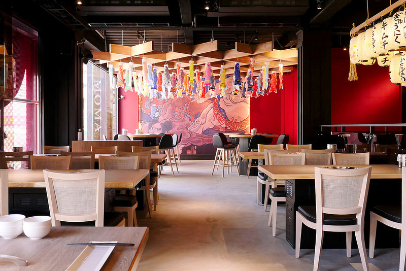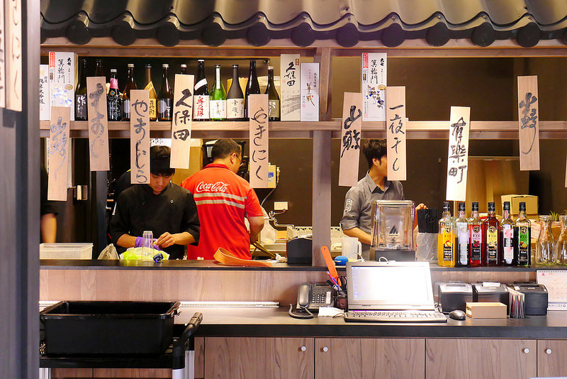 大眾酒場、燈籠元素,卻又帶一點點韓風混搭,還有浮世繪的搭配相當有味道!