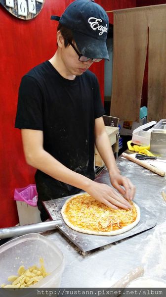 看他現做囉! 大概等7-8分鐘,陣陣的pizza香