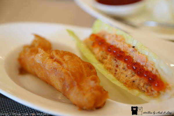 蝦捲搭配生菜和店家特製醬料,吃起來不油不膩,