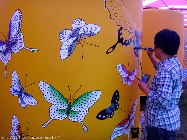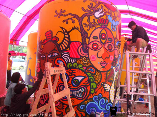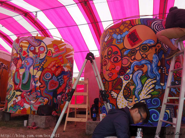 我們在4月份到台中文創看展時,剛好有看到藝術家們在彩繪,