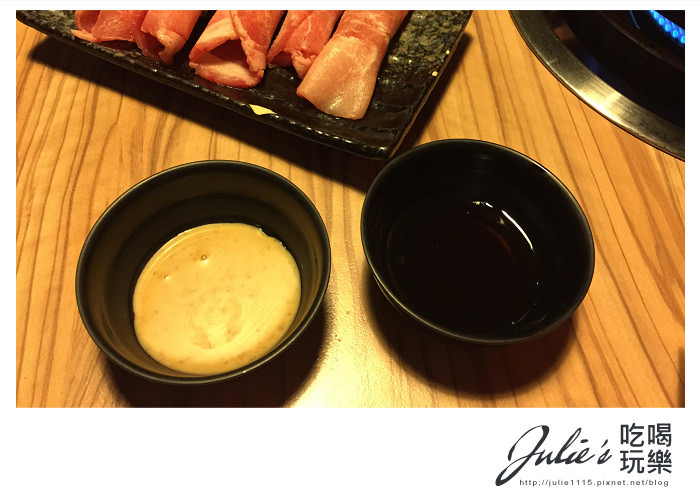 ▲ 鍋物附的醬料,胡麻醬/柚子醬油,其實我都很少用他們,因為原味就夠好吃拉~