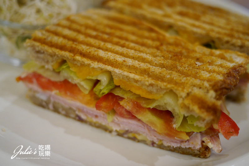 麵包的表皮烤到有點酥脆感,搭配濕潤的內餡剛剛好。印象中是個吃起來很有飽足感的三明治。