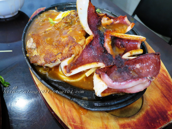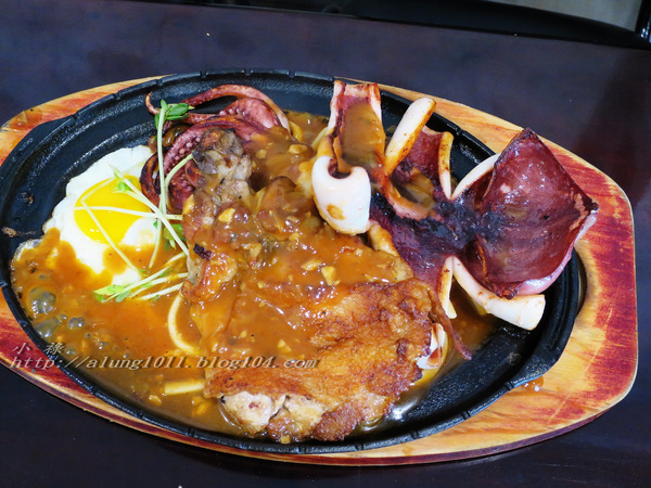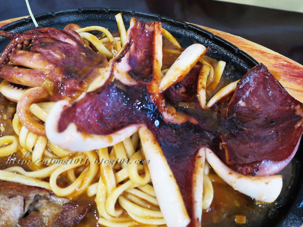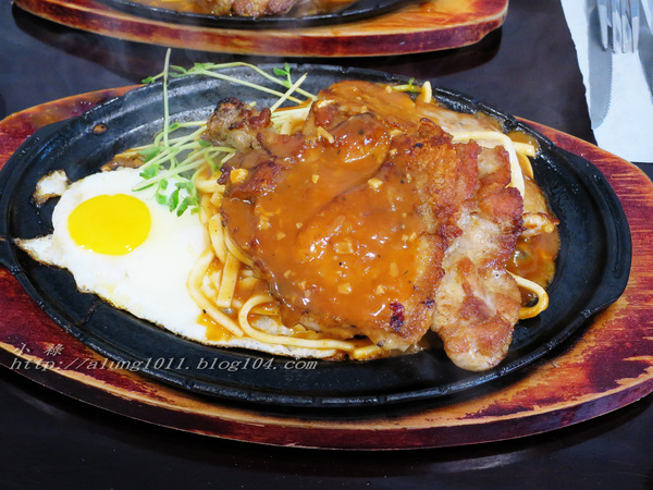 整體的雞排、豬排味道都不錯,鐵板麵也不錯,可惜蔬菜配得太省略只有幾根生豆苗。