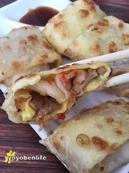 招牌燒肉蛋餅42元,他們家的蛋餅是脆餅皮