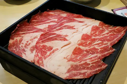 的麻辣鍋湯底,香氣非常濃厚,椒麻的香味我個人還蠻喜歡的,可惜San倒不是很愛,三大塊的牛肉帶有
