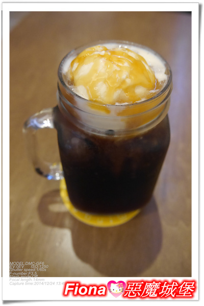 Fiona不喝咖啡,所以另外點杯飲料給她,她選來選去看中了「漂浮可樂」,送來的時候也很讓我驚喜,因為上頭的香草冰淇淋好大一球,而且還淋了香甜的蜂蜜,一整個就讓Fiona心花怒放呀!!