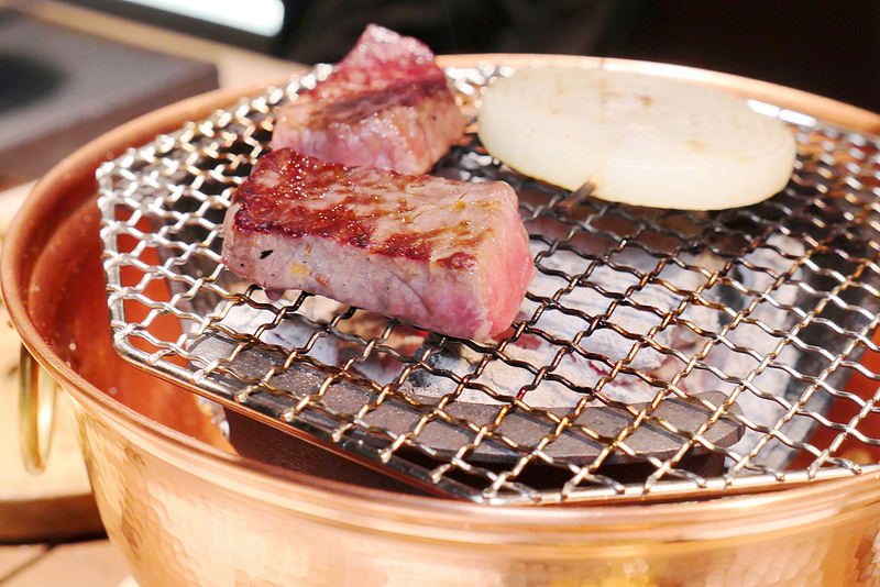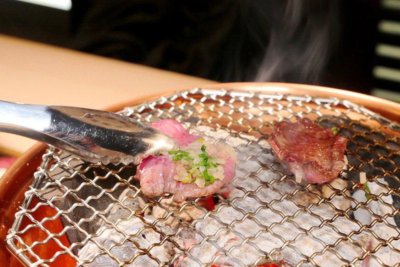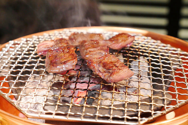 嶄新的烤網裡面盛裝的是燒得正紅的備長炭,上方是特製的排煙管,跟一般日式燒肉不同。