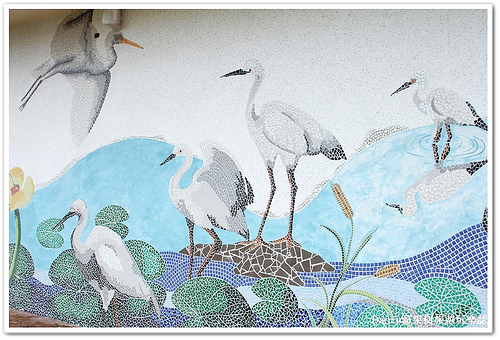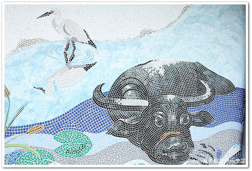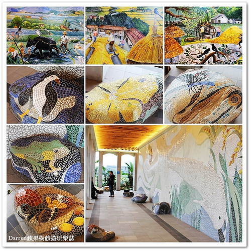 馬塞克拼貼出農村裡的春種夏耕秋收冬藏,地上的石頭也都貼上馬賽克拼貼很有欣賞的價值