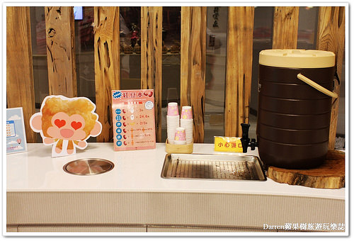 接下來就是商品展售區,這裡提供紅豆水免費喝,溫溫的紅豆水比市面上的紅豆水好喝