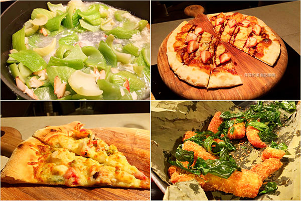 蟹肉燴芥菜、披薩、炸魚