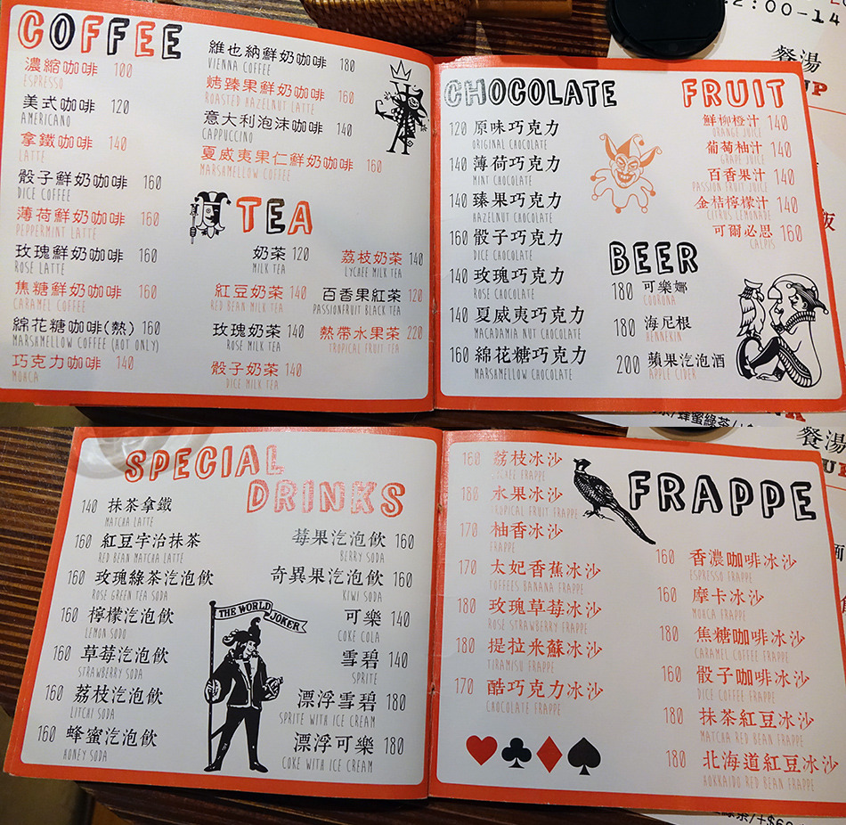 看樣子許多美式的元素被運用在店內的佈置,像是英雄彩色漫畫內頁、還有撲克牌壁貼