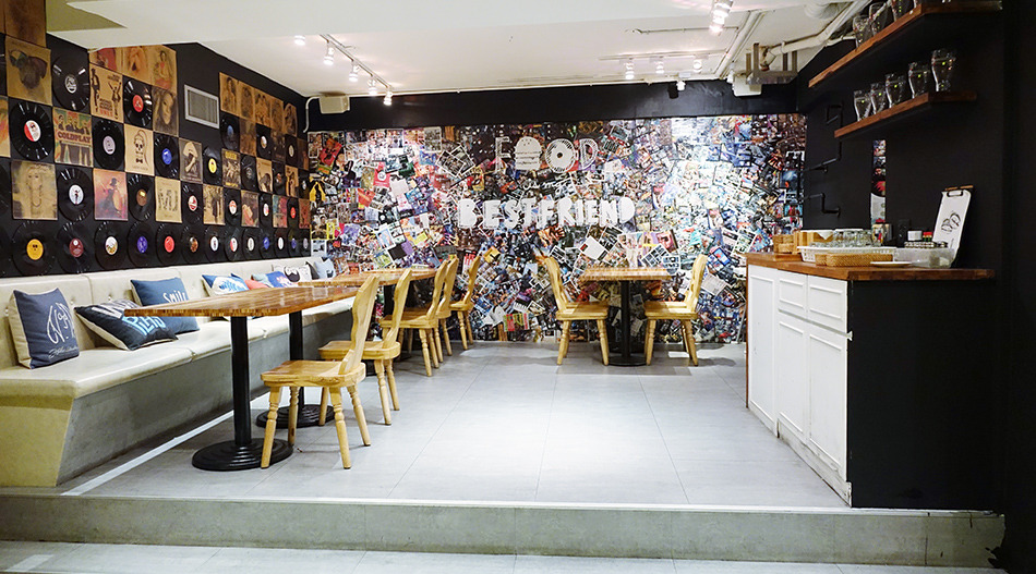 店員說這些可真的都是可以播放聽歌的黑膠唱片哦~ 都是老闆自己買來收藏,開店時拿來佈置