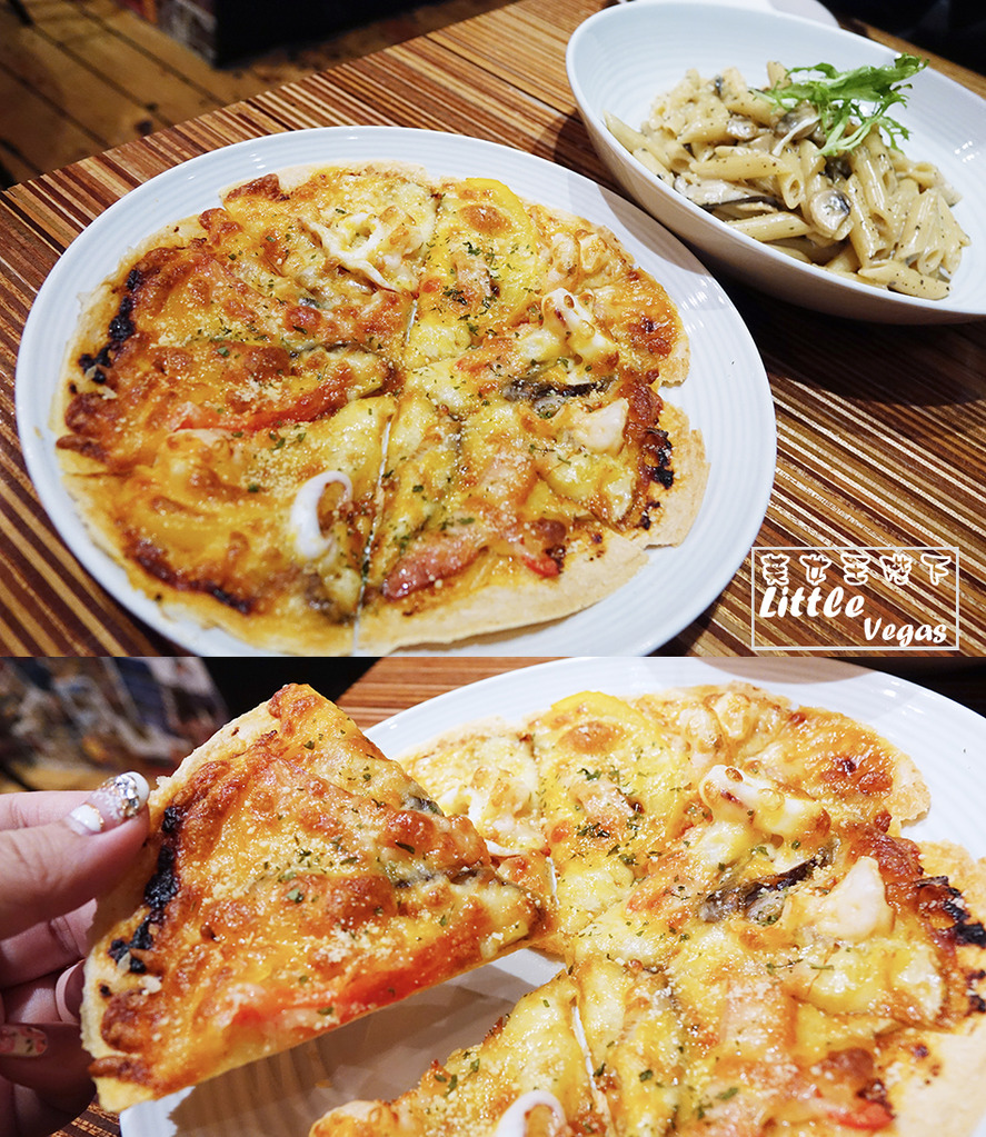 披薩底層的醬料說是主廚特調的泰國醬,但又不會過鹹,帶點小微辣很開胃