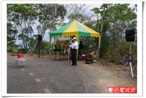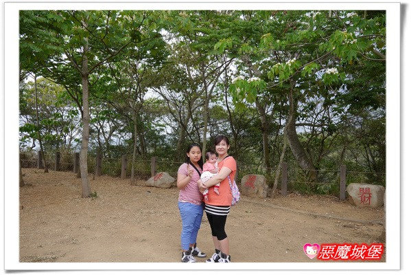 走了一段路後,有一個供觀景的「員獅亭」,亭子的周邊圍繞了幾株油桐樹,我們在這休息+拍照,同時因為天氣不佳的關係,也決定將這當作此次爬「藤山步道」的終點,其他留待下次有機會再來挑戰啦!