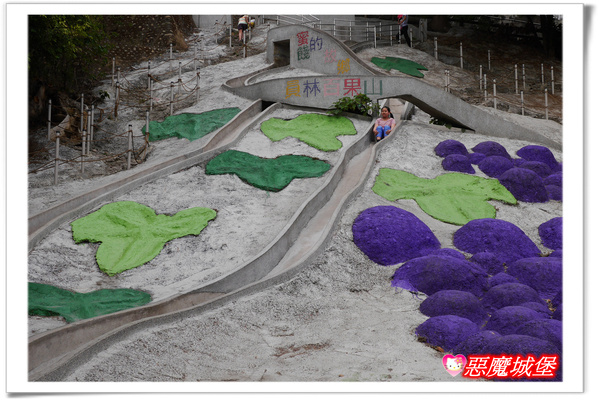 離開「海豐崙彩繪村」後,我們直接開車到員林來,再次造訪讓Fiona非常難忘的「百果山幸福溜滑梯」,或許是抵達的時間正好是中午的關係,也或許是熱潮已過的關係,總之今天在這玩樂的小朋友比上次來少了許多,Fiona超開心沒有太多人,因為這樣就不用排隊啦!