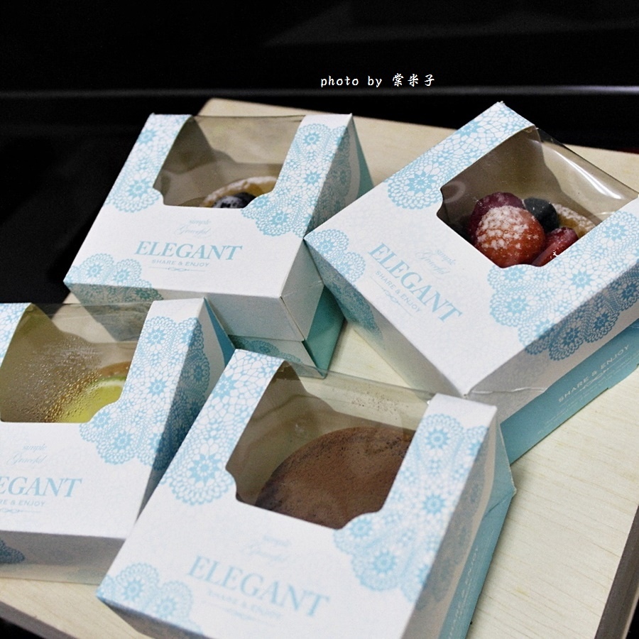 一個個甜點塔都被細心的用小紙盒一一裝的好的,