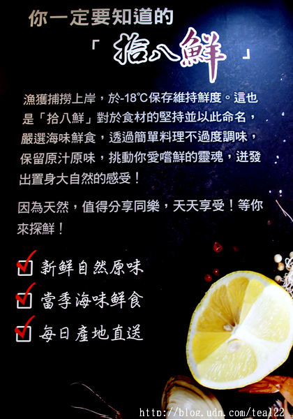 第一次到拾八鮮原味海鮮燒物吃飯,看到這些簡單的菜單,我還在想,這樣簡單的菜色,老闆支付得了這路段高價的房租嗎?但是,老實說,當我吃到主廚的料理後,我不敢小覻了,這些菜色,其實一點不簡單,這幾道食材若不夠新鮮,想純以原味火烤、清蒸,是絕對做不到的,能考量吃食物原味,不使用重油、重調味,我第一個猜測就是,這一定是家中有小孩的父母,果然,當老闆告訴我孩子放學,她常讓孩子到這吃飽再回家,我忍不住微笑了,因為,我吃到了家中的味道,那希望孩子吃得健康,長得高高壯壯的期許。