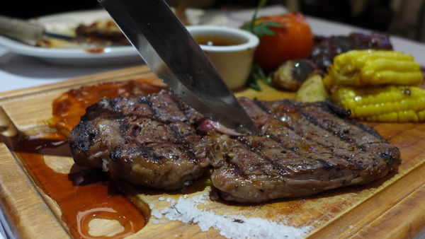 要看牛排韌不韌從刀鋒輕觸就可以略知一二,嗯~感覺很好切