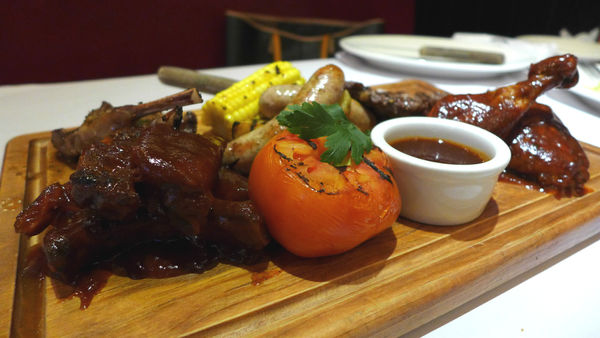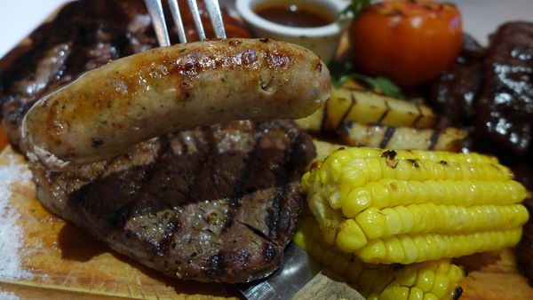 有6oz牛排、義式香腸、羊小排、BBQ豬肋排和烤雞,是肉類大集合!!!!