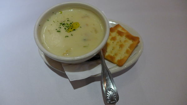 湯品之一是新英格蘭蛤蠣濃湯,附有兩片沒有軟掉的蘇打餅乾!!!