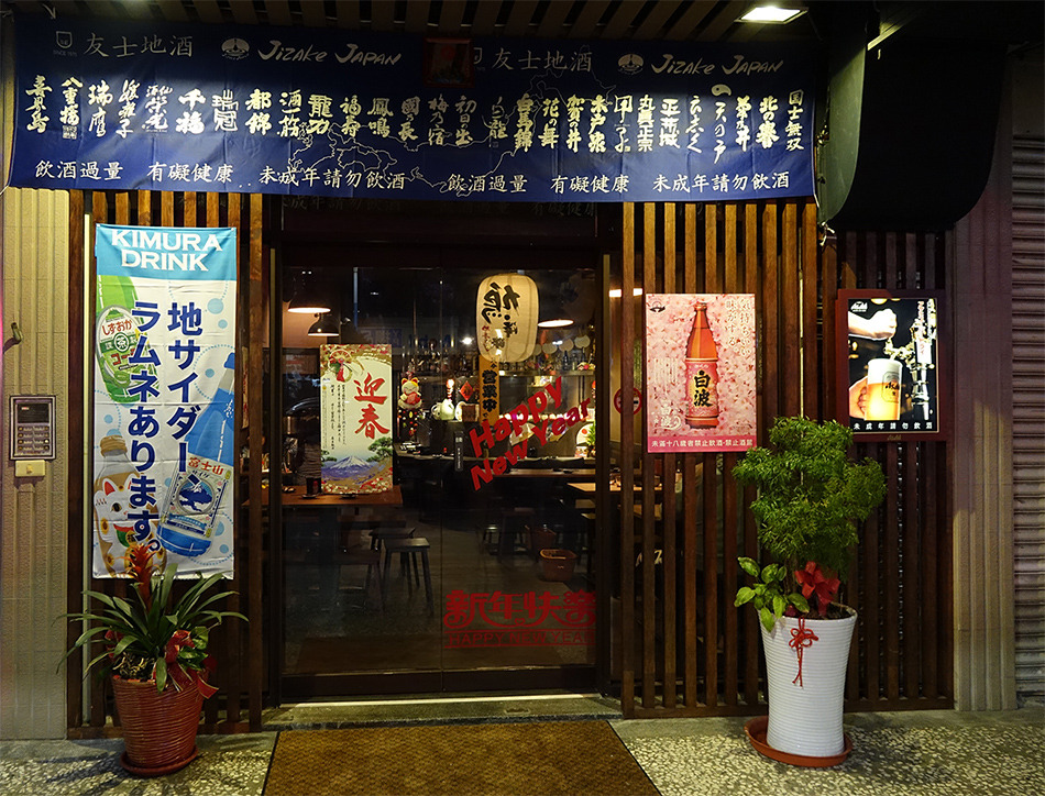 門外運用木頭建築營造出很日本居酒風格,許多日本旗幟與布招都掛在上面