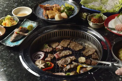 每烤一種肉都會換一次烤盤,燒烤台是以天然氣加熱爐底的紅外線導熱片上,燒至發紅後,熱氣往上,不像一般木炭會產生炭灰,也不會吃的灰頭土臉。