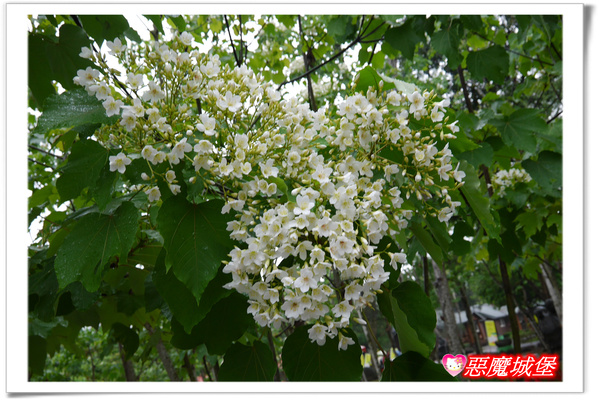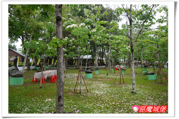 園區內的油桐花已經開了6、7成以上,花況算是很不錯,許多被雨水打落到地面的花舖成一圈一圈的小白毯,很有浪漫的氣氛呢!