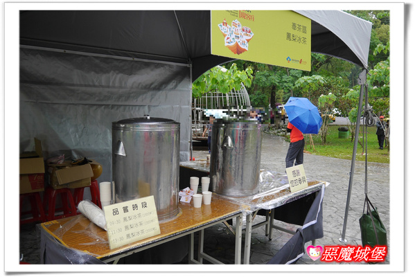 換完文宣品,我們往舞台區的方向走,發現竟然有奉茶區,是微熱山丘的鳳梨冰茶,超好喝的呢!