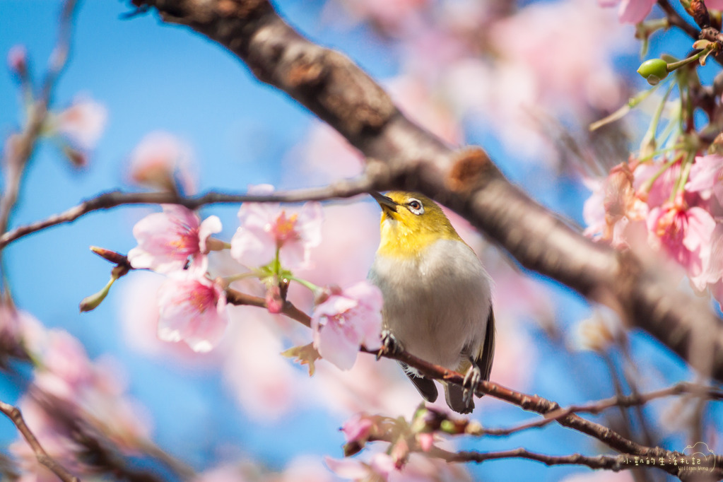 藍天配粉紅花瓣,整個超日系的 哈哈