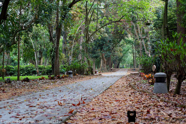 步道兩旁高聳的肖楠樹形成一個拱型的通道,散步其間,使人神輕氣爽雜慮全消,