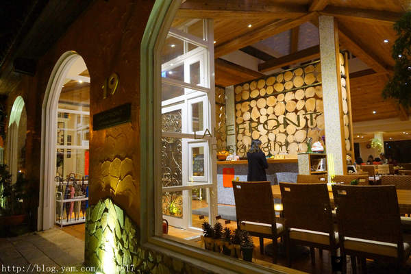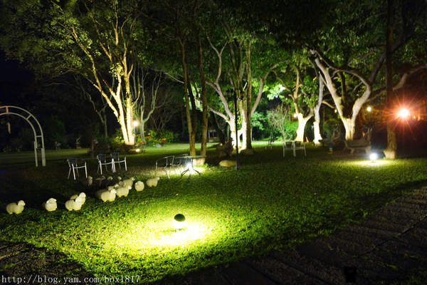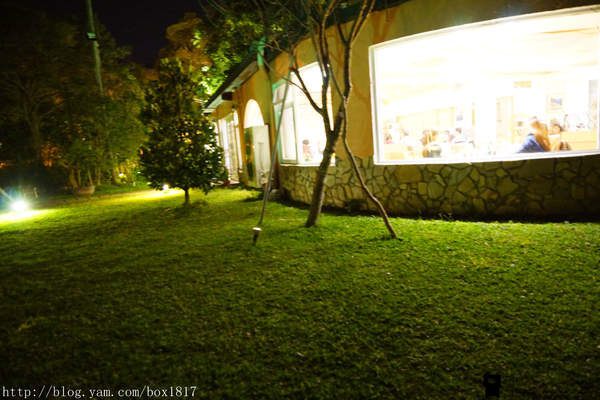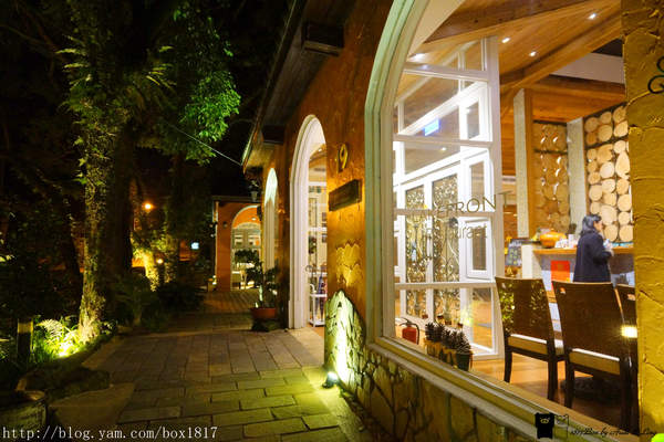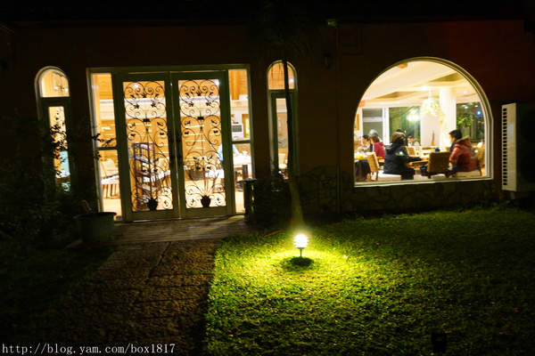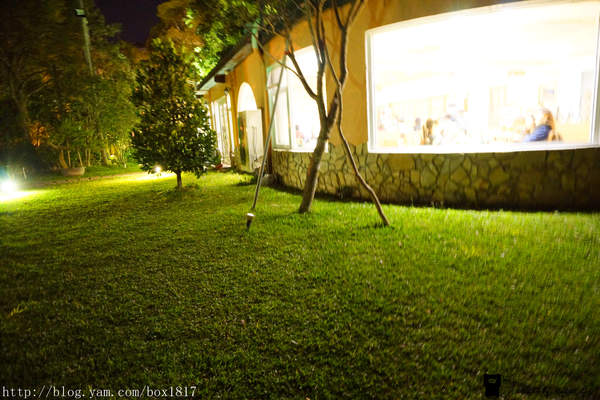 餐廳有歐式花園與噴水池、草地上童話氣息的綿羊石雕,