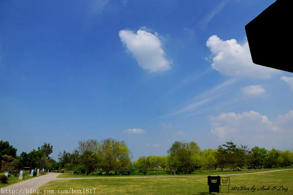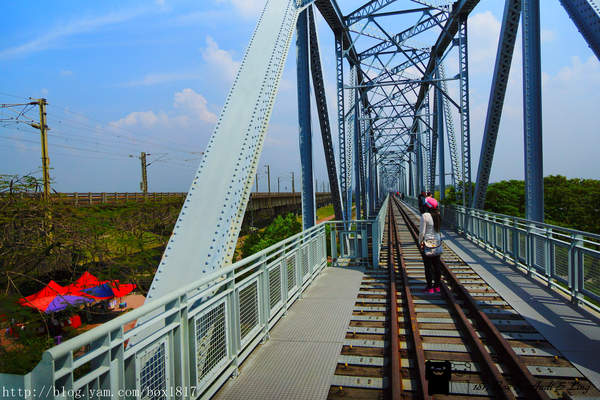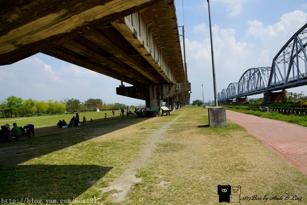好天氣,藍天白雲來做伴,抵達大樹舊鐵橋時,看到許多人在綠地裡野餐,