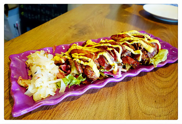 附上店家自製的酸菜,再擠上辣芥末醬
