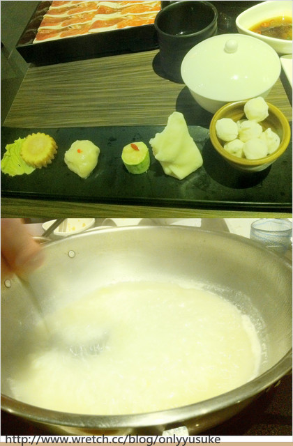 火鍋配料和肉送上來了