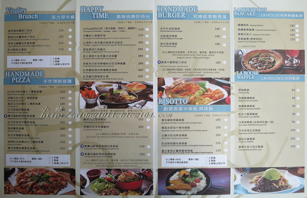 薄餅披薩、烘蛋、排餐、創意漢堡、燉飯、風味鬆餅等等;飲品的選擇性也很多有咖啡、茶飲