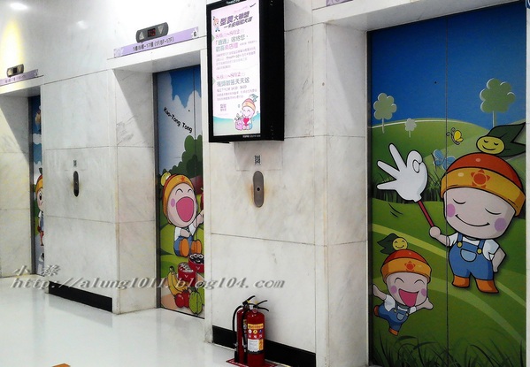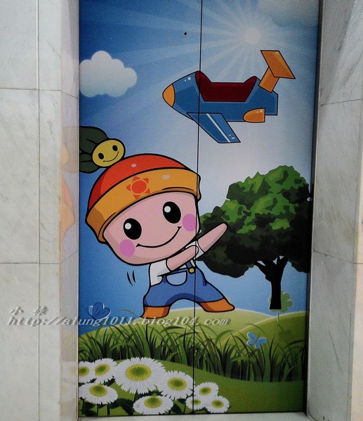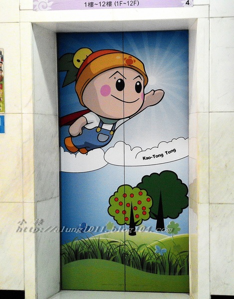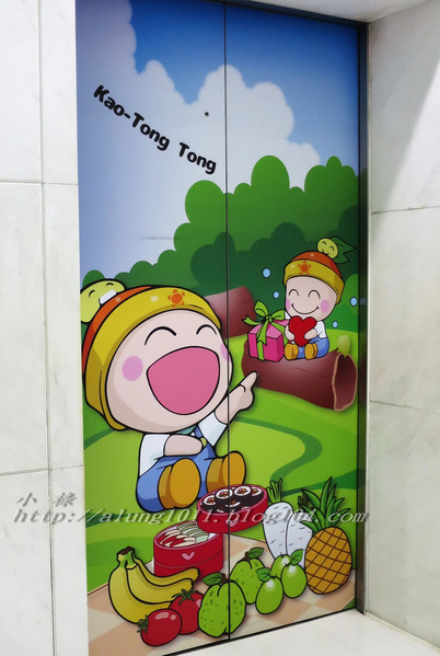 一樓側門上就有高通通的萌影~ 連電梯門都換上高通通的可愛萌樣。