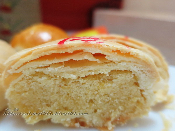 蛋黃酥餅皮是依祖傳秘方熬製糖漿,並以老麵調和新麵揉製而成,口感特別。好吃~~