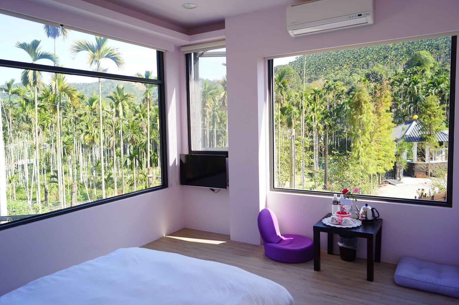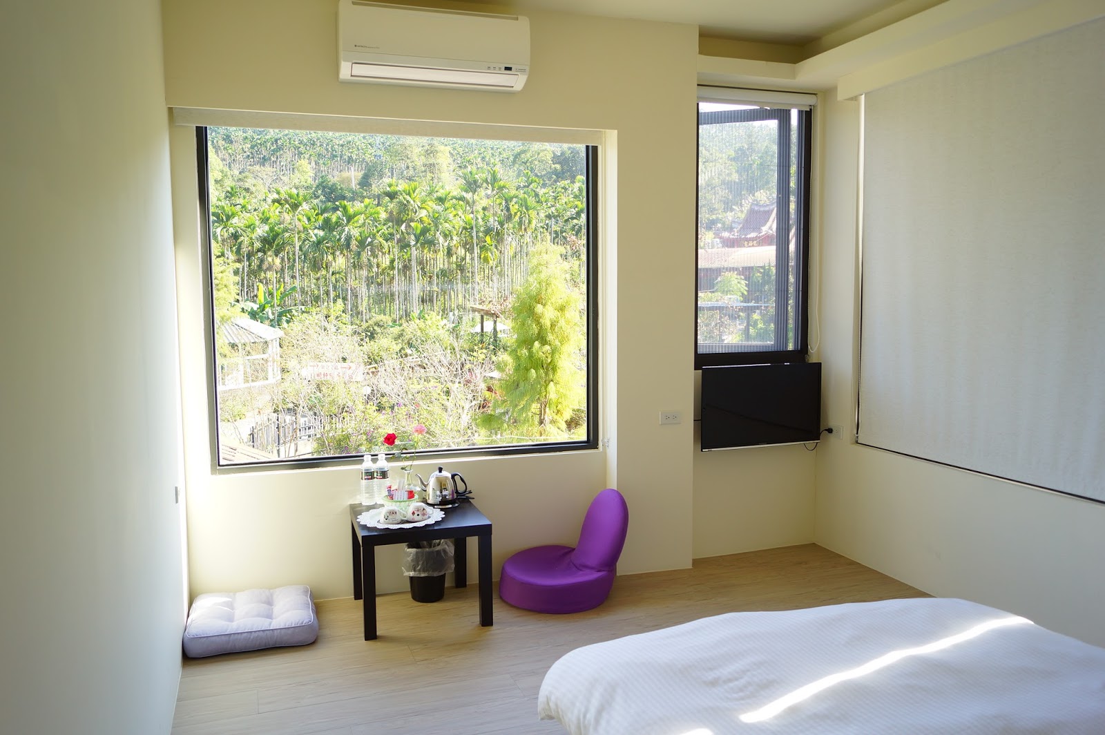 這次入住的當然是雙人房囉,景色望出去都可以看到庭院跟旁邊的...檳榔樹? 哈哈,因為南投這邊很多地方都有種檳榔,所以看到檳榔樹可別感到奇怪呀。