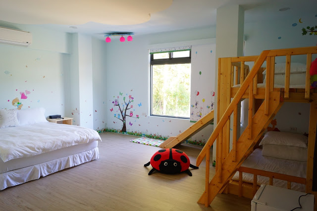 這間是親子房,加小朋友應該可以住到六位吧,小朋友看到溜滑梯應該超開心吧!