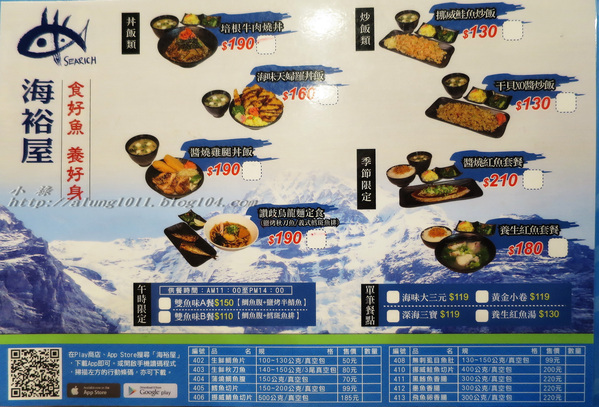 點餐囉~ 雖然也有雞肉等其他料理可選但既然來到魚的寶庫-海裕屋-當然要選好魚吃、養好身囉!