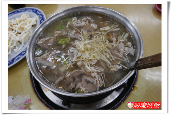 接著,我們的「薑絲羊肉爐」上桌了,「楊家羊肉爐」的湯頭是由數種中藥及羊大骨熬製而成,喝起來濃郁不油膩,在熱呼呼夏天品嚐也不會覺得上火~~