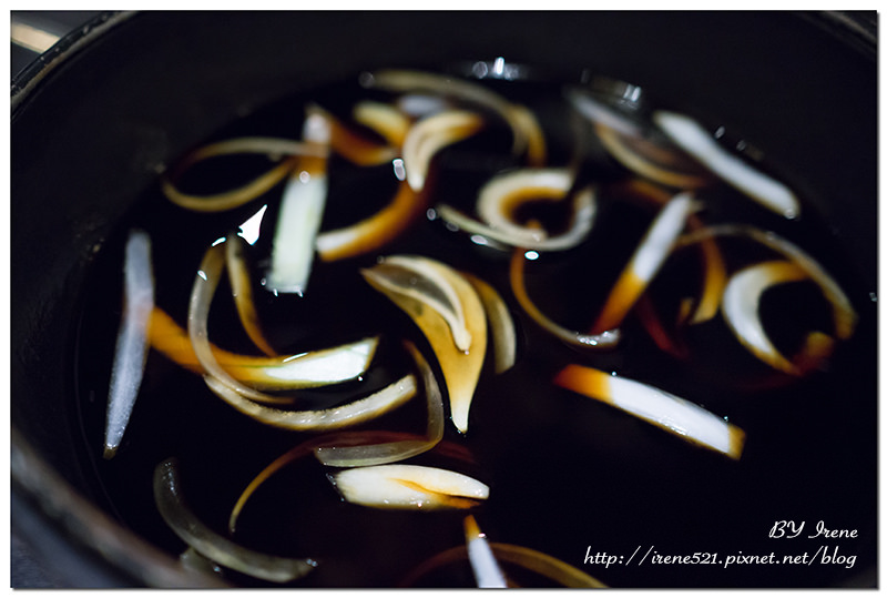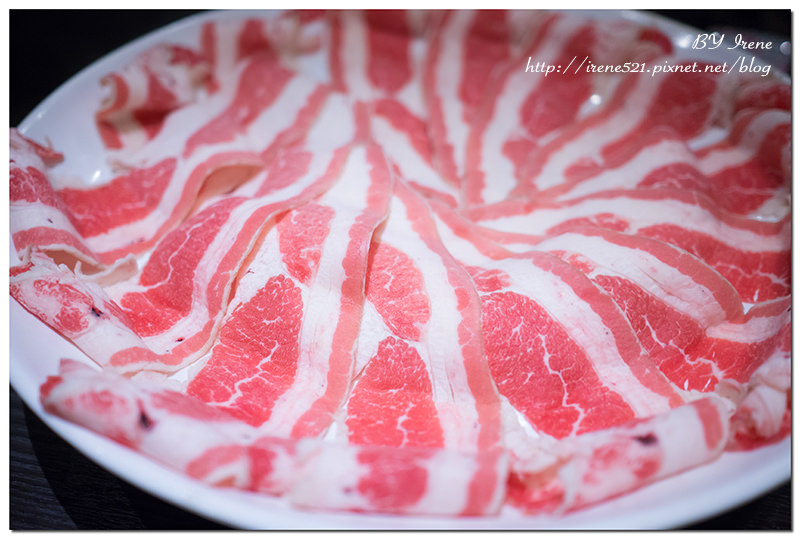 Menu上推薦「壽喜燒-培根牛肉」(8盎司,NT.360),油花顧名思義很豐富,