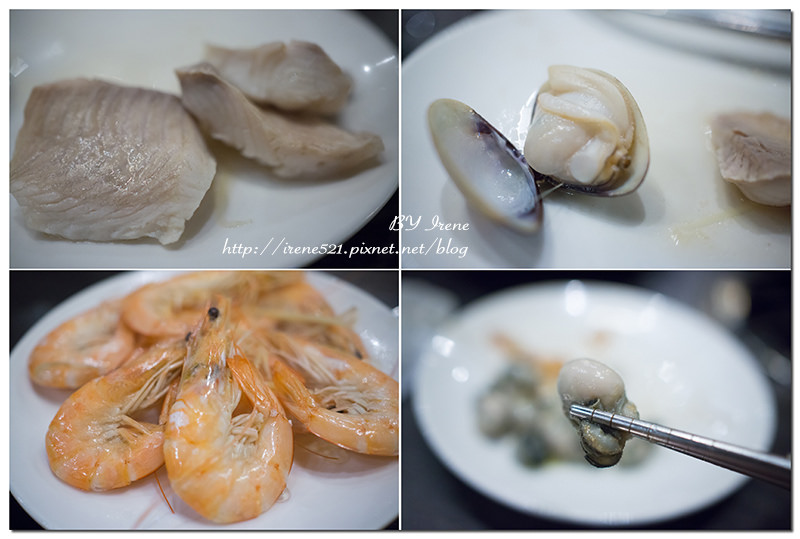 鮮蚵、鯛魚片、蛤蠣、鮮蝦,份量不少且看起來都很新鮮,