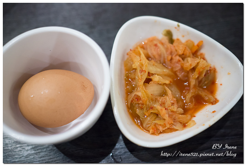 壽喜鍋額外多一顆雞蛋和泡菜,雞蛋提供的還蠻好的,是土雞蛋,